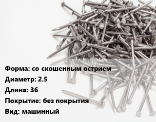 Гвоздь со скошенным острием 2.5х36 без покрытия машинный
