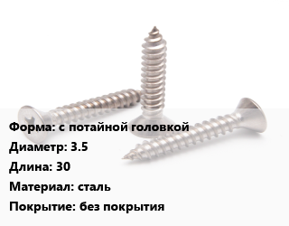 Саморез с потайной головкой D=3.5 L=30 сталь без покрытия, шт цена По запросу где купить, условия доставки в Казани и Казанской области