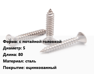 Саморез с потайной головкой D=5 L=80 сталь оцинкованный