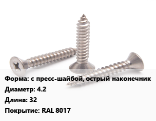 Саморез с пресс-шайбой, острый наконечник D=4.2 L=32 RAL 8017, упаковка 500 шт цена от 360.92 ₽ / кг, где купить, условия доставки в Казани и Казанской области