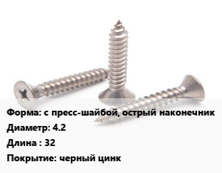 Саморез с пресс-шайбой, острый наконечник D=4.2 L=32 черный цинк, шт цена от 2.15 ₽ / кг, где купить, условия доставки в Казани и Казанской области