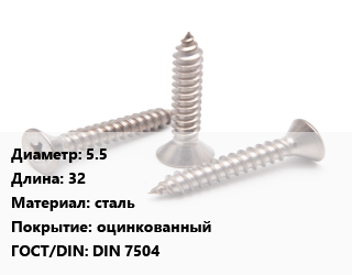 Саморез 5.5 L=32 сталь оцинкованный ГОСТ: DIN 7504