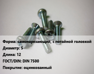 Винт самонарезающий, с потайной головкой 5х12 DIN 7500 оцинкованный, 4.8, цена за шт, кг цена По запросу где купить, условия доставки в Казани и Казанской области