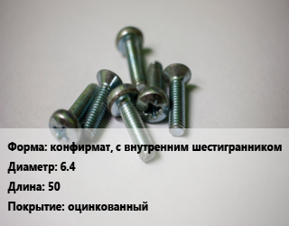 Винт конфирмат, с внутренним шестигранником 6.4х50 оцинкованный, цена за шт, кг цена от 12.6 ₽ / кг, где купить, условия доставки в Казани и Казанской области