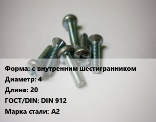 Винт с внутренним шестигранником 4х20 DIN 912 Сталь: A2