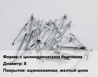 Заклепка с цилиндрическим бортиком 8 оцинкованная, желтый цинк