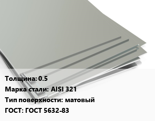 Лист нержавеющий 0.5 Сталь: AISI 321 Тип:матовый ГОСТ 5632-83