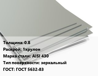 Лист нержавеющий 0.8 1хрулон Сталь: AISI 430 Тип:зеркальный ГОСТ 5632-83