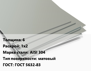 Лист нержавеющий 6 1х2 Сталь: AISI 304 Тип:матовый ГОСТ 5632-83, шт, г/к,х/к цена от 33 914 ₽ / т, где купить, условия доставки в Казани и Казанской области
